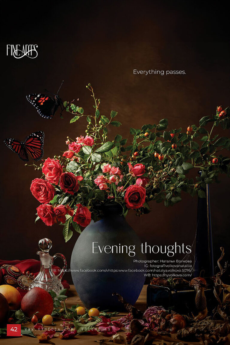 Був період у навчанні, коли я не знаючи, знімала на зламану камеру. Але фотографії всеодно виходили дуже непогані. Це мені дало переконання, що знімає не апарат, а людина яка має потрібні навички.