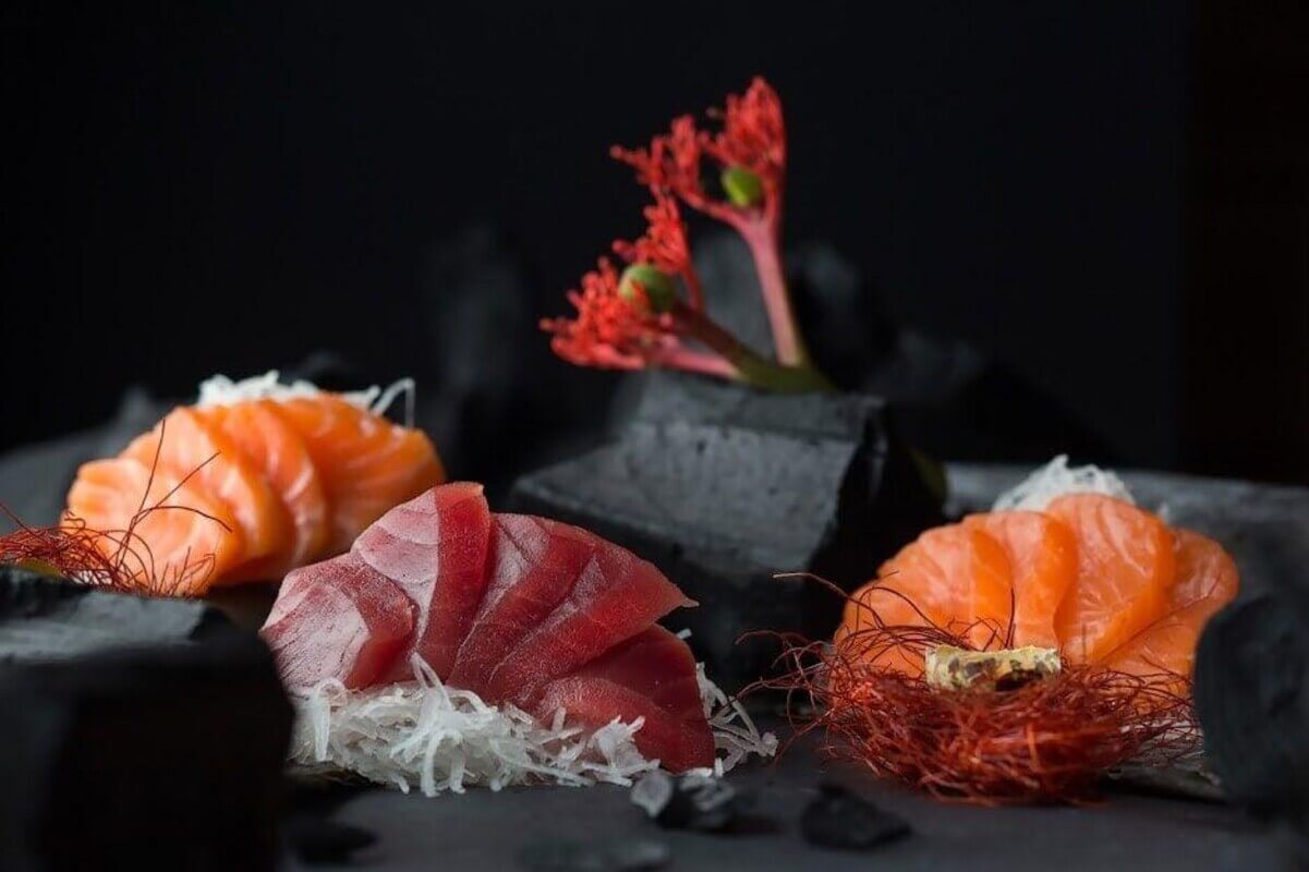Якщо страва досить контрастна та фактурна, то найкращий спосіб поставити її на темне тло. Це композиційне рішення дозволяє сфокусуватися виключно на страві, розглянути інгредієнти та відчути його смак. При цьому фактурою може бути як сам посуд, так і різні матеріали: підлога в ресторані, темна стільниця або, наприклад, насіння чорного кунжуту.